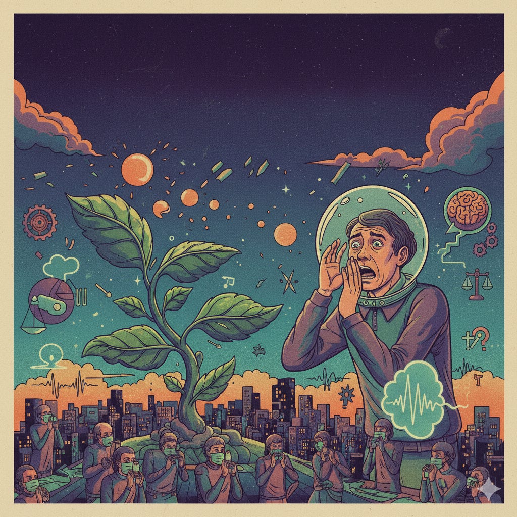 Mein Name ist Yara, ich bin siebenundzwanzig, und ich leide an Botanischer Schuld – das ist die offizielle Diagnose, die meine Therapeutin mir vor drei Monaten gegeben hat. Sie sagte es durch ihr Avatar, ein sanft pulsierendes Lichtfeld, das aussah wie ein Schwarm biolumineszenter Quallen. “Du musst lernen, mit der Ambivalenz zu leben,” flüsterte das Quallenlicht. Aber wie soll ich das, wenn selbst die Luft, die ich atme, von Pflanzen produziert wird? Bin ich nicht ihre Komplizin? Ihre Nutzerin? Ihre stille Mörderin?