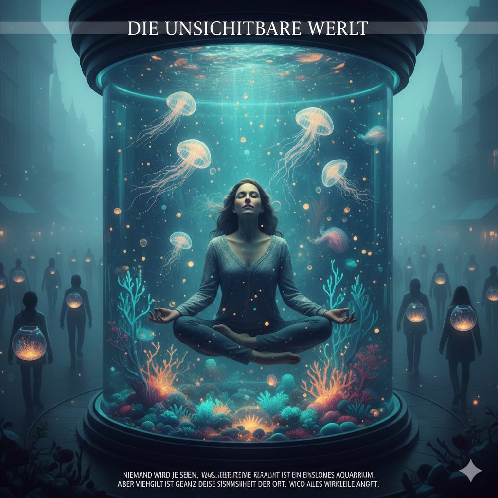In diesem Augenblick, zwischen Schlaf und Wachen, begreifst du: Niemand wird je sehen, was du siehst. Deine Realität ist ein einsames Aquarium, in dem du schwimmst.