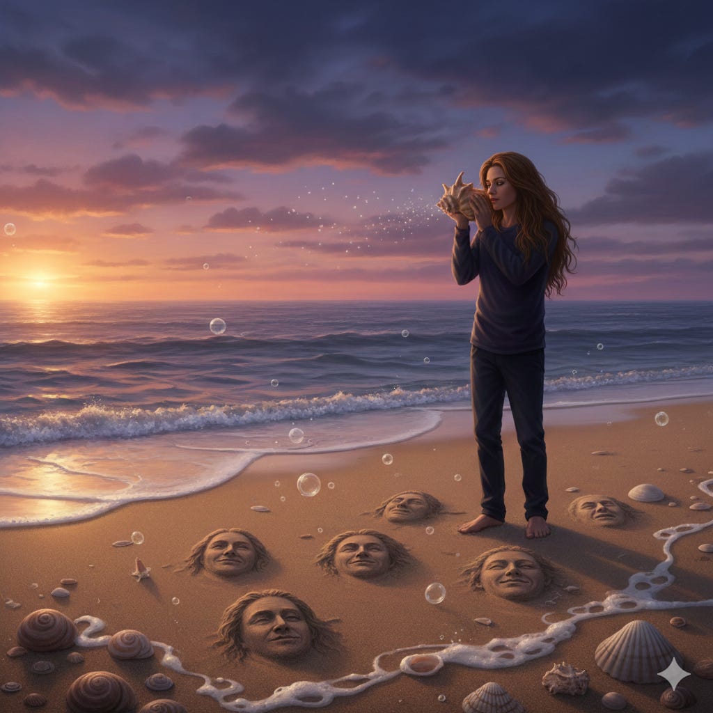 Wie ich lernte, den Muscheln zuzuhören, die nichts verschweigen, während der Sand unter meinen Füßen Gesichter formte, die ich einmal kannte